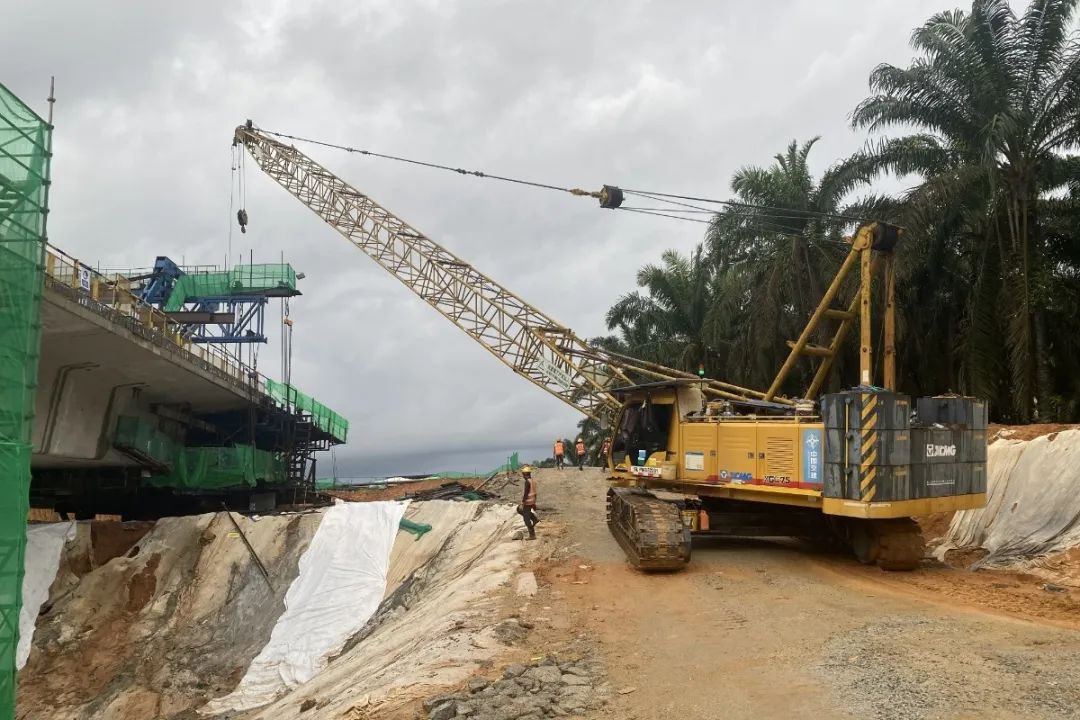 在馬來西亞東海岸鐵路建設的工地上,徐工XGC75履帶起重機正以擎天之勢吊裝關鍵構件。馬來西亞東海岸鐵路是標志性項目,全長 600 多公里,將構建連接馬來西亞東西海岸的重要 “陸上橋梁”,打通關丹港和巴生港,提升貨物運輸效率,助力馬來西亞融入國際貿易體系。