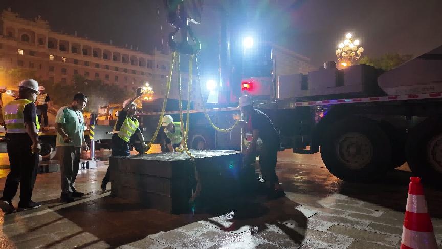 在中聯(lián)重科助力央視直播閱兵項(xiàng)目工作中,龍衛(wèi)國(guó)(左一)為設(shè)備保駕護(hù)航