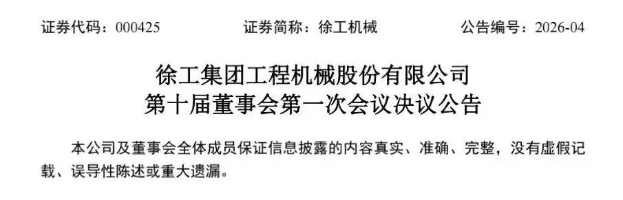 1月15日,徐工集團工程機械股份有限公司(以下簡稱“公司”)召開2026年第一次臨時股東會及第十屆董事會第一次會議,順利完成董事會換屆選舉與高級管理人員聘任工作。